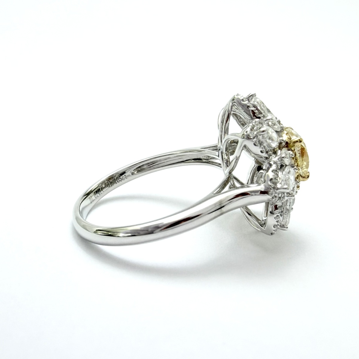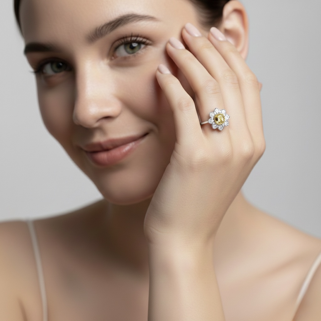 NATURAL YELLOW CUSHION DIAMOND FLORAL HALO RING