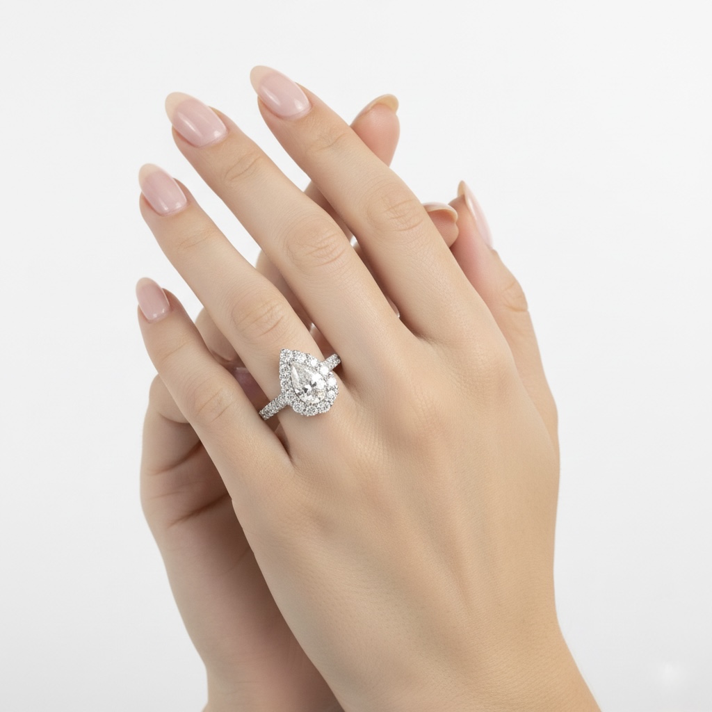 LAB-GROWN DIAMOND PEAR HALO RING
