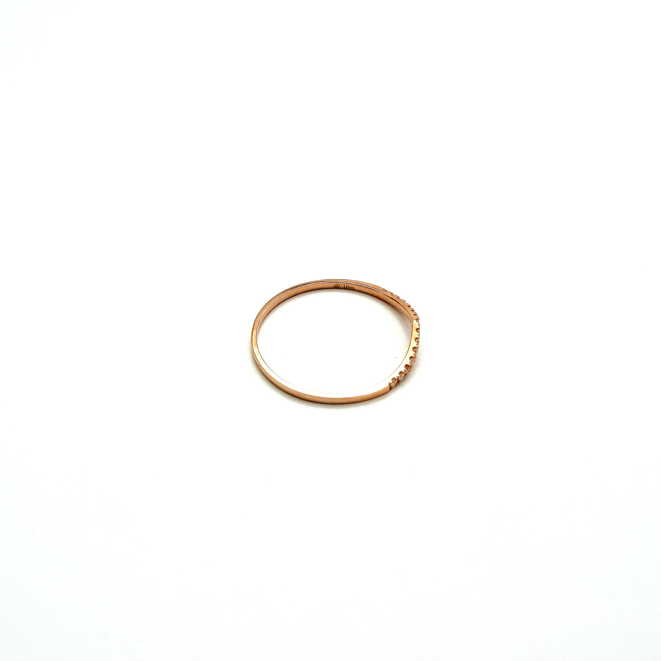 Crafted in romantic 18K rose gold, this refined diamond band features a soft V-shaped curve adorned with shimmering round brilliant diamonds. The elegant chevron design beautifully frames an engagement ring or stands alone as a modern yet timeless piece, offering subtle sparkle and feminine sophistication.