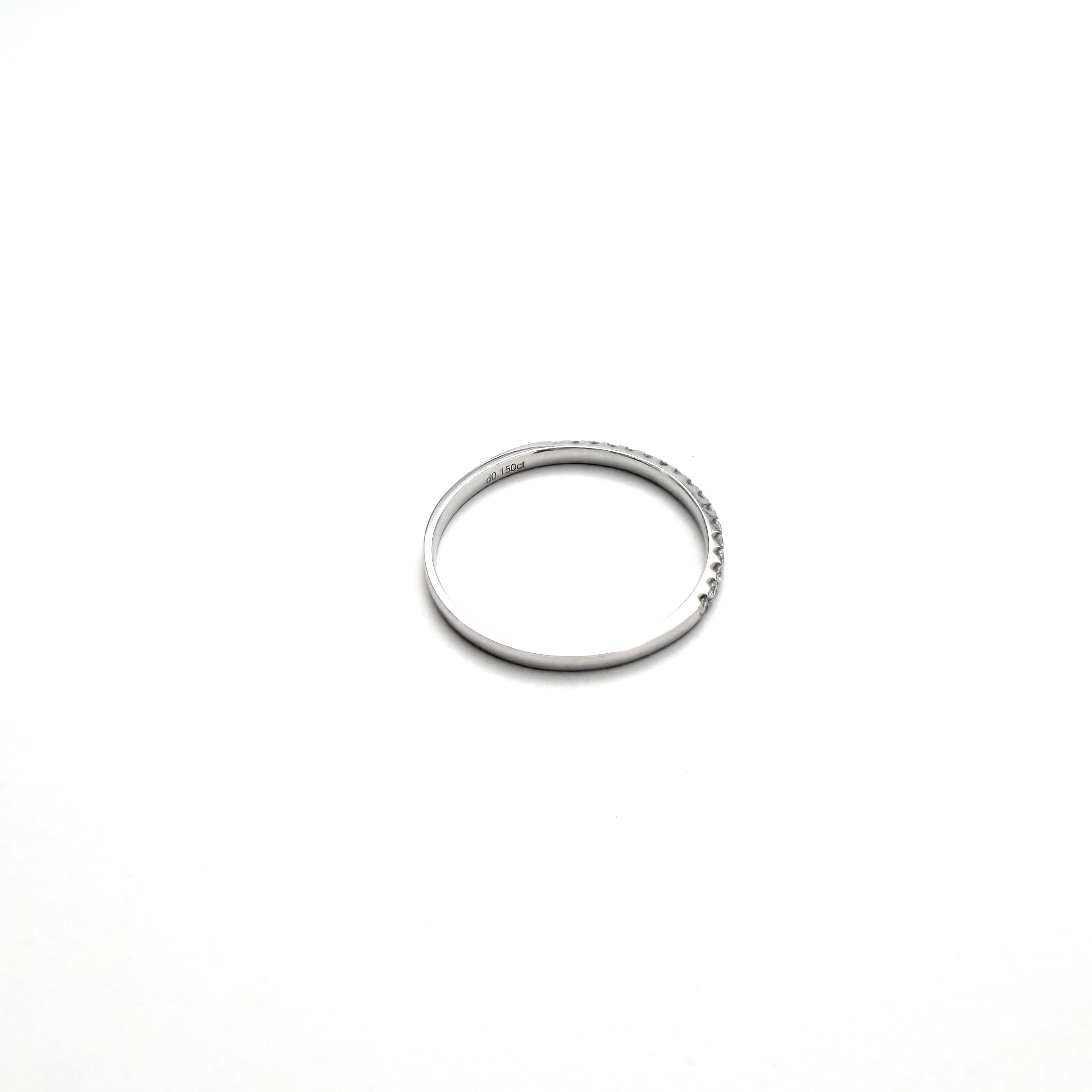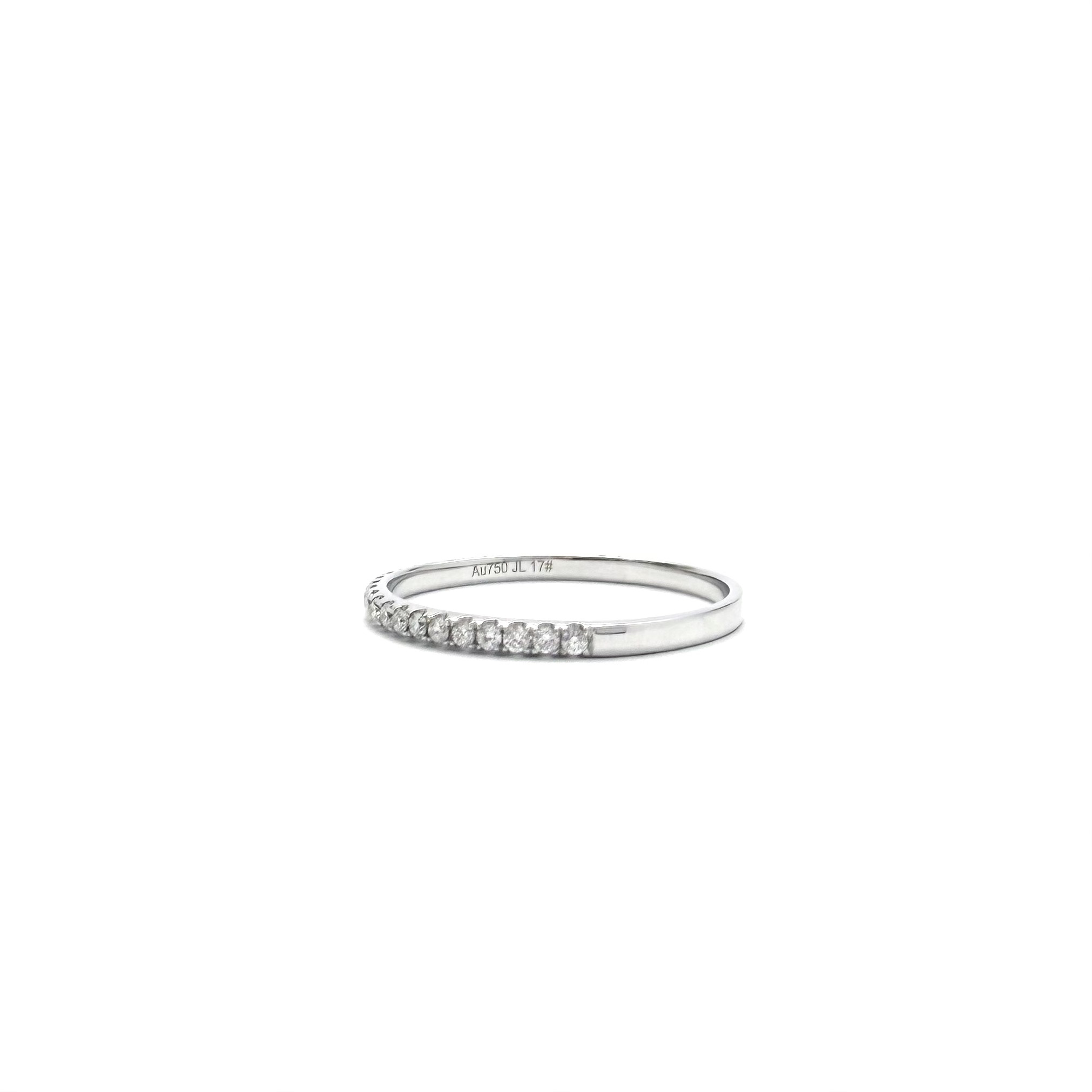 Crafted in luminous 18K white gold, this refined band features a delicate row of brilliant diamonds set along the surface, creating a radiant and elegant sparkle. Its understated and versatile design makes it perfect for stacking, pairing with an engagement ring, or wearing alone as a symbol of effortless sophistication.