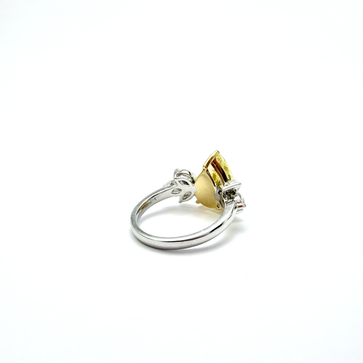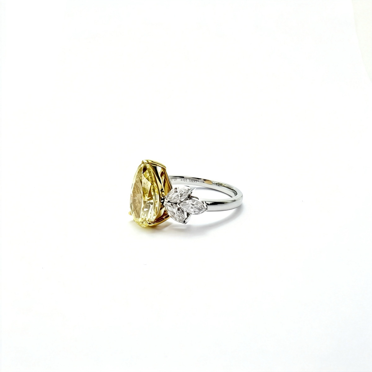 Crafted in luxurious PT950 platinum, this extraordinary ring showcases a stunning pear-shaped yellow lab-grown diamond as its centrepiece, radiating vibrant colour and exceptional fire. Elegant side diamonds are delicately arranged to enhance the centre stone, creating a graceful, nature-inspired silhouette that amplifies its brilliance. Bold yet refined, this remarkable piece is a radiant statement of modern luxury and timeless elegance.