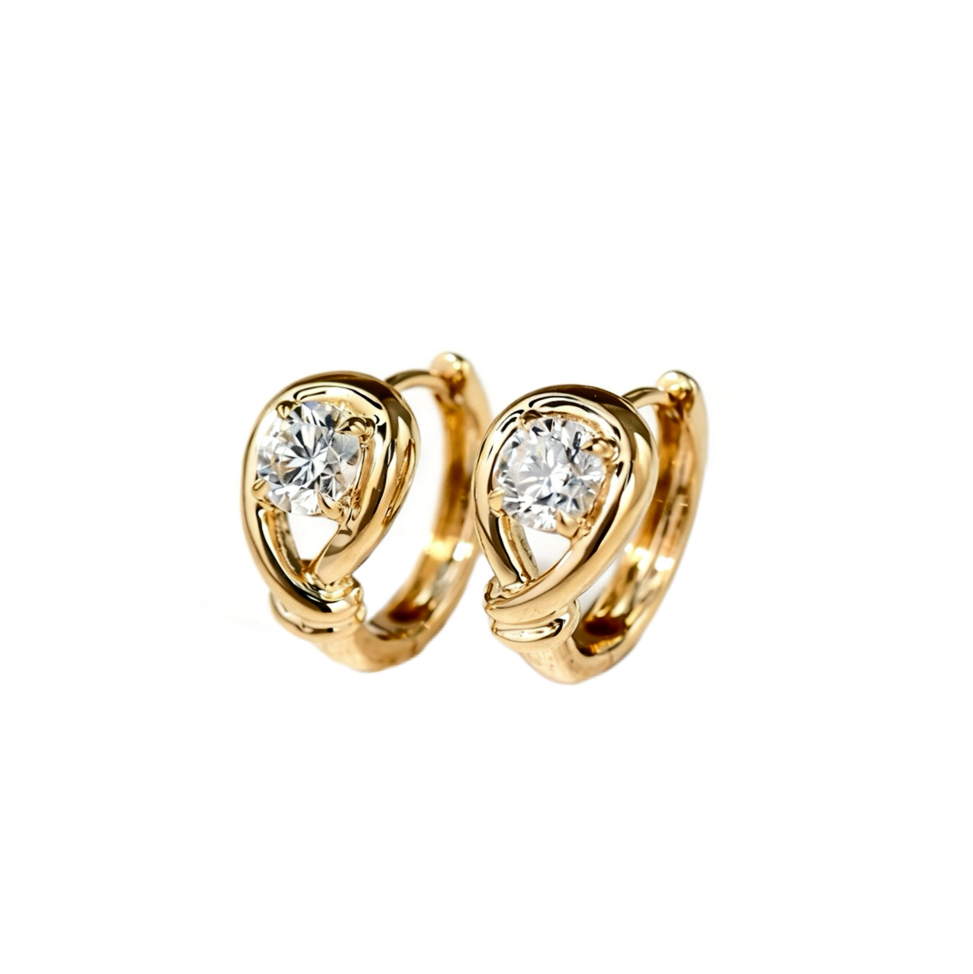 Crafted in 18K yellow gold, these refined stud earrings feature luminous lab-grown diamonds beautifully set within an elegant sculptural design. The distinctive crossed gold silhouette gently embraces each diamond, creating a graceful balance of contemporary style and classic sophistication. These earrings offer exceptional brilliance and clarity. Designed for effortless luxury, they are the perfect piece to elevate both everyday wear and special occasions.