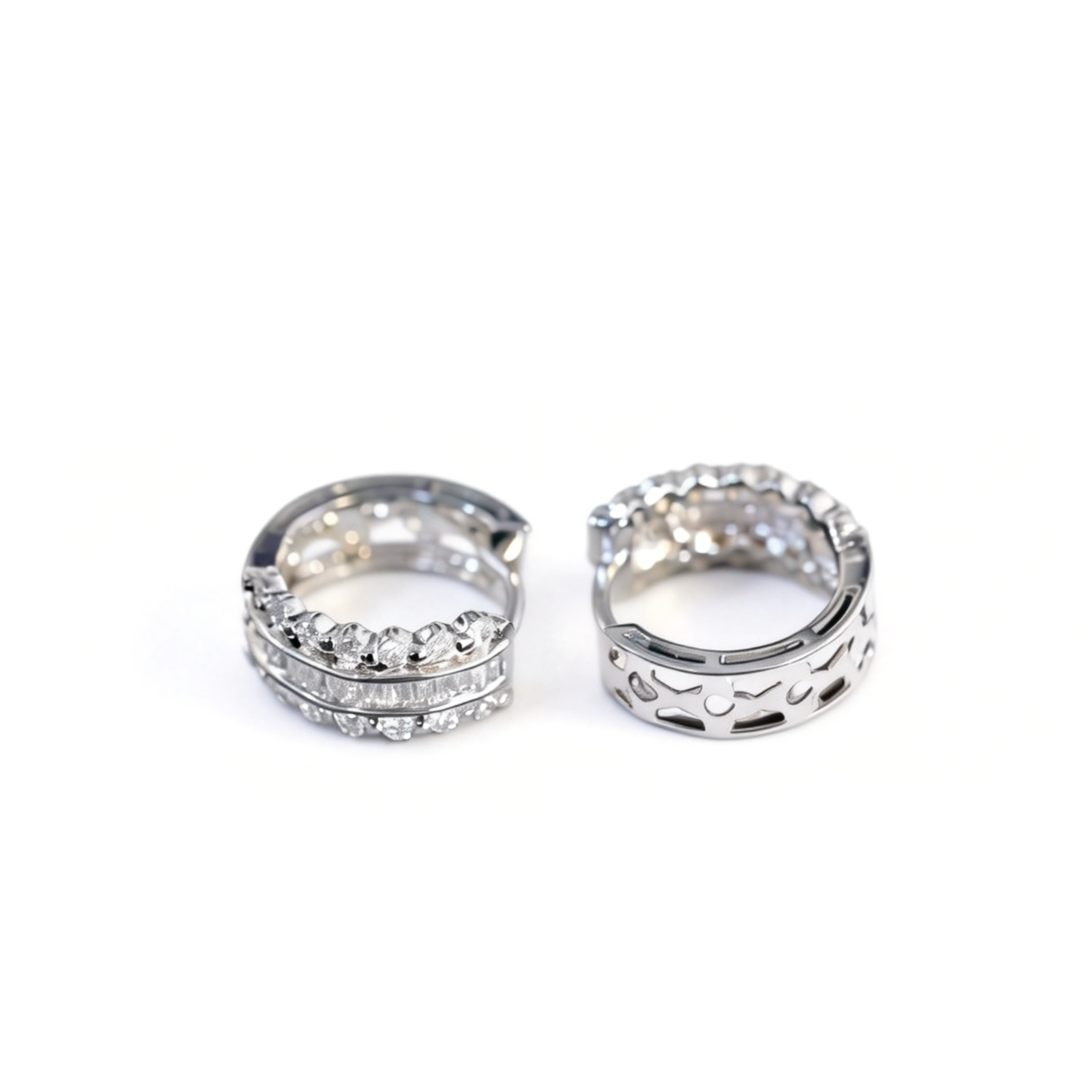 Crafted in 18K white gold, these elegant earrings feature multiple rows of natural diamonds arranged in a refined layered design. The combination of round brilliant and baguette-style diamonds creates a captivating play of light, delivering exceptional sparkle from every angle. Set with 1 carat total diamond weight, SI clarity, and G colour, these earrings offer impressive brilliance while maintaining timeless elegance. Designed to make a statement, they are the perfect balance of contemporary luxury and classic refinement.
