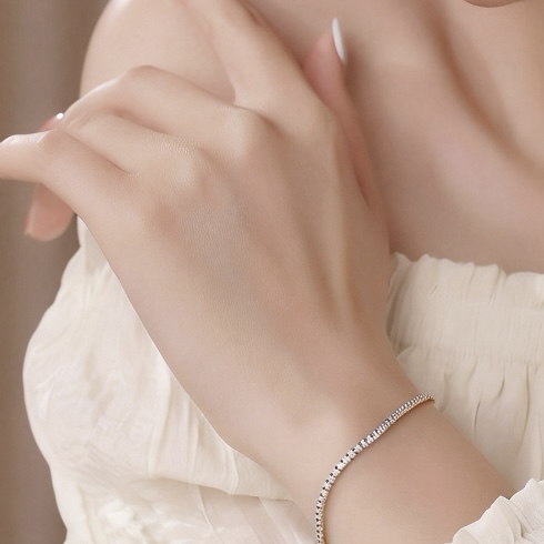 Expertly crafted in 18K white gold, this elegant tennis bracelet features a continuous row of perfectly matched natural round brilliant diamonds, each individually secured to create a fluid line of sparkle. The refined setting enhances the natural fire of every diamond, allowing light to reflect beautifully from every angle. This bracelet represents both superior quality and classic sophistication. Its graceful design sits comfortably on the wrist, making it a perfect piece for both everyday elegance and special occasions. Available in multiple diamond sizes, offering varying levels of brilliance while maintaining the same timeless design.