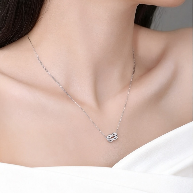 Crafted in luxurious Pt950 platinum, this elegant necklace features a graceful infinity-inspired design delicately adorned with natural diamonds. The flowing curves are enhanced with brilliant accent stones that create a soft, continuous sparkle, symbolising eternity, balance, and enduring devotion. Refined yet meaningful, this piece is perfect for everyday elegance or as a sentimental gift, representing love that knows no end while offering timeless sophistication.