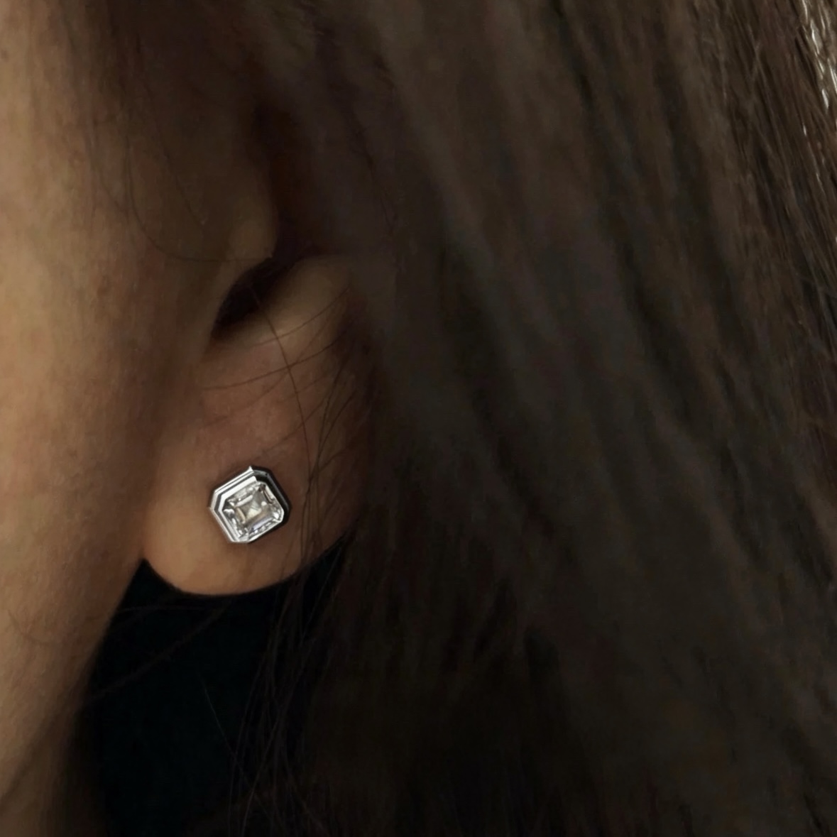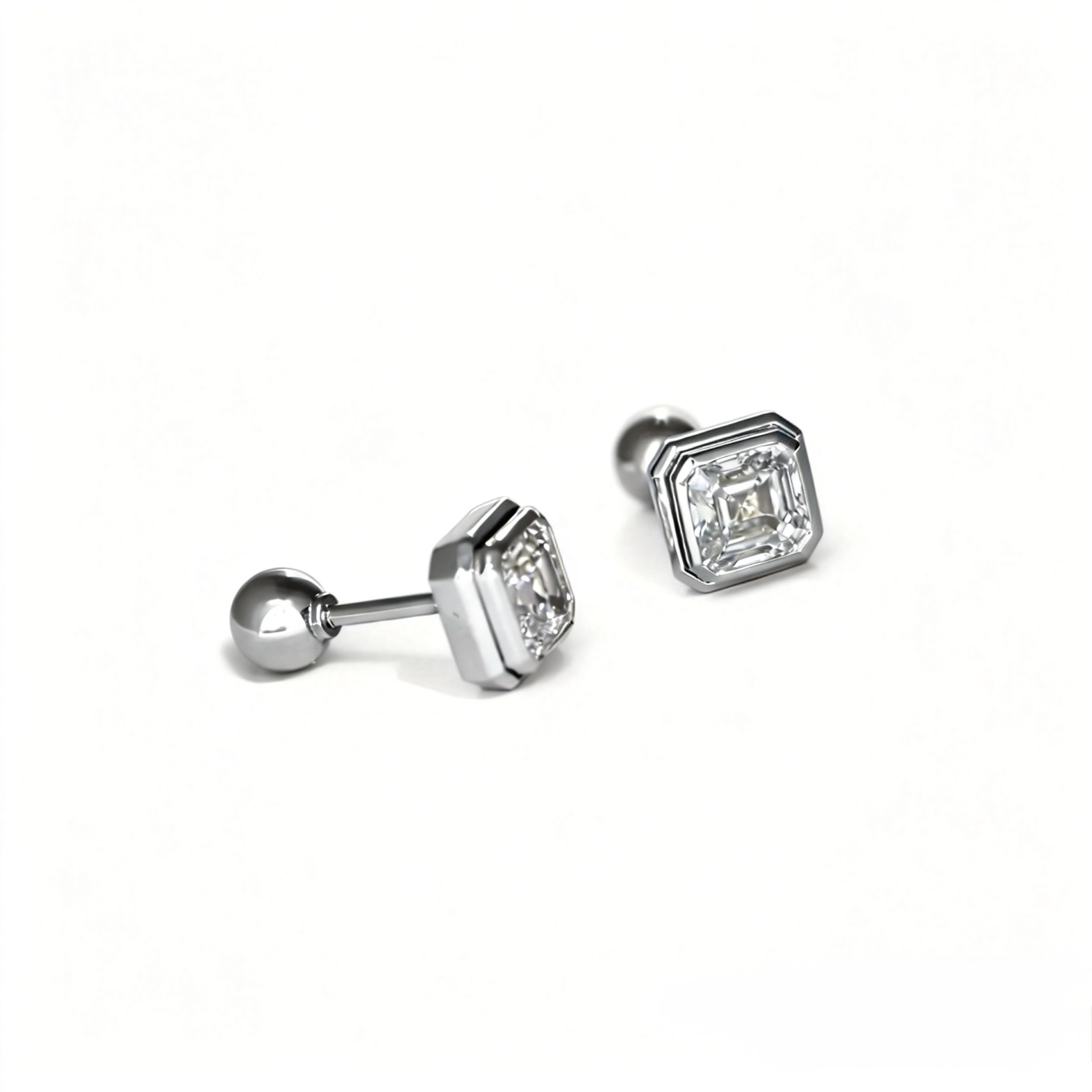 Crafted in 18K white gold, these elegant stud earrings feature striking Asscher-cut lab-grown diamonds, celebrated for their distinctive step-cut facets and mesmerizing hall-of-mirrors brilliance. The clean geometric silhouette of the setting enhances the architectural beauty of the Asscher cut, creating a modern yet classic piece that radiates understated luxury. Designed for those who appreciate precision, balance, and exceptional craftsmanship, these diamond studs offer a sophisticated sparkle perfect for both everyday elegance and special occasions.